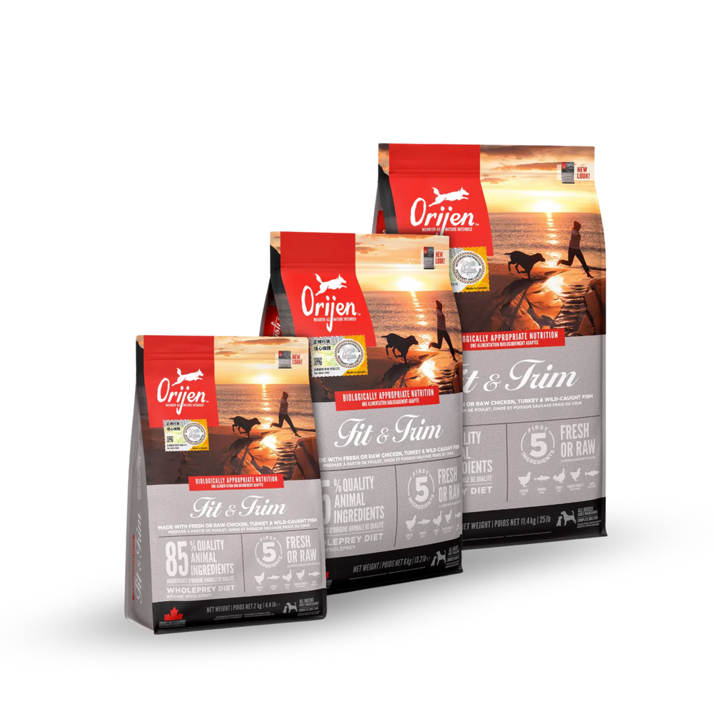 Fat and carbohydrate-limited, with a unique blend of fibre from pumpkin, apples and squash. Orijen Fit & Trim promotes peak conditioning in all adult dogs, including yours.