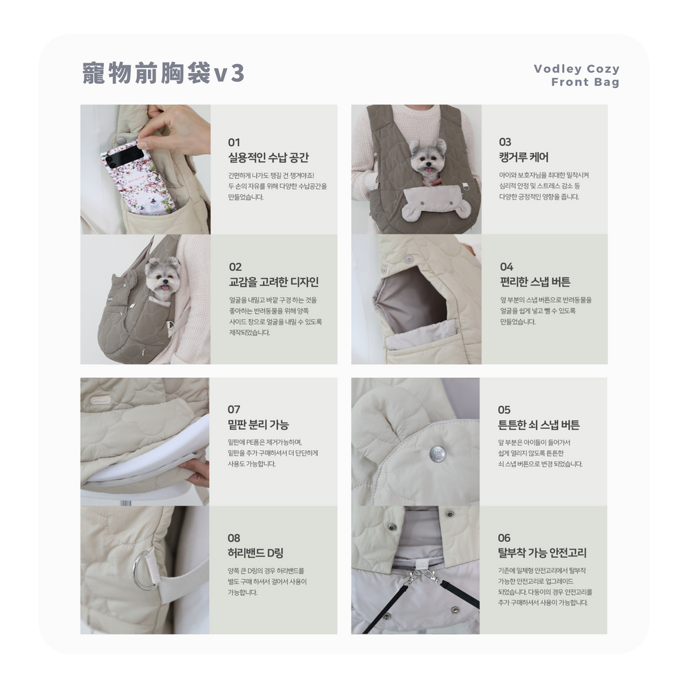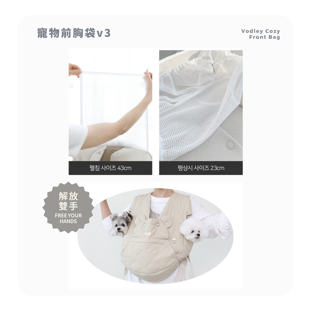 以嬰兒背帶的形式,重量分佈在雙肩上,使寵物感覺更輕,並支撐寵物的整個身體,幫助其舒適地移動。